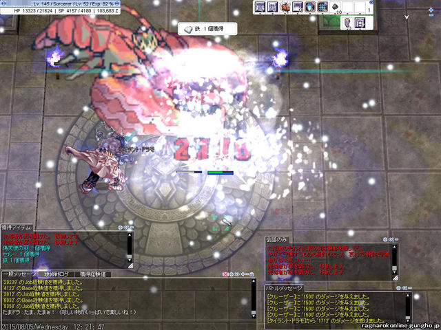 というわけで、私もソロで周回プレイをしているわけですが、フロアの敵は楽勝なわりに中Q地下3階のボスに勝てていなかったりします。厄介な「ストームガスト」は、凍らない「エクセリオンスーツ[0]」と水耐性特化の「エクセリオンウィング[0]」で1ダメージに抑えられるのですが、爆裂波動状態になってからの通常攻撃がどうにもなりません。