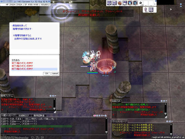 ▲ボス部屋から一時撤退したあとで昇降機で地下3階を選択すれば消えてしまうのです。