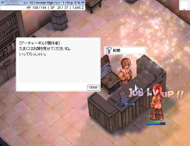 ▲ヴァルキリーの贈り物をもらってBaseLv10、JobLv10にしてあれば、基本スキルを上げるだけでOK。弓手村の北東にあるアーチャーギルドへ行けばすぐに転生1次職に転職させてもらえます。なお、転生前に習得していなかったアーチャーのクエストスキルも習得済みになるので、すぐに「矢作成」で矢を作り出すことも可能になります。