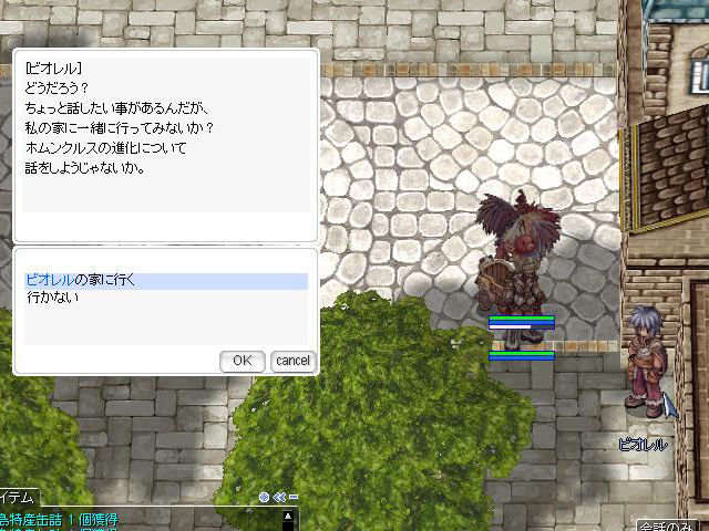 ▲ホムンクルスSへの変異はプロンテラのテイミング商人のそばにいるNPC「ビオレル」から。ホムンクルスを召喚し、50,000Zeny以上所持した状態で始めるのがオススメです。