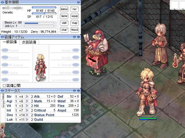 というわけで、長年親しんだクリエイターの姿ともお別れです(まぁ別キャラを育成すればいいんですけどね)。ジェネティックになるには、条件(クリエイターのBaseLv90以上)を満たしたうえで、アルデバランのアルケミストギルドにあるポスト型NPCに話しかければOK。所持重量をゼロにして、カートも外した状態で転職!