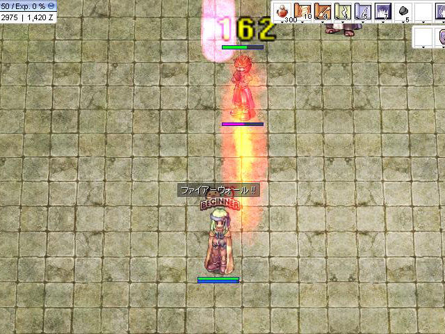 ただし、「フェモン」が「速度増加」を使って移動速度をアップした場合、「ファイアーウォール」に当たる間隔が短くなり、それだけ早く踏み越えて接近される可能性があります。「メテオストーム」などを詠唱する場合には、あらかじめ「ファイアーウォール」を2枚出しておくなどの保険も必要になってくるでしょう。