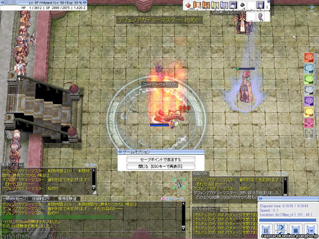 前回、英雄の痕跡「ゲフェン魔法大会」では、2回戦の「ディオ・アネモス」に敗退するという悲しい結果になりました。が、「ファイアーウォール」による足止めからの「メテオストーム」という、比較的オーソドックスな攻撃スタイルが一番いいのではという道筋が見えたので、再度挑戦してみることにしました。