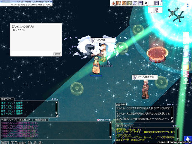 ▲「ゲフェン魔法大会コイン」でBase経験値を150万獲得。転生への追い込みにはありがたい獲得量です。