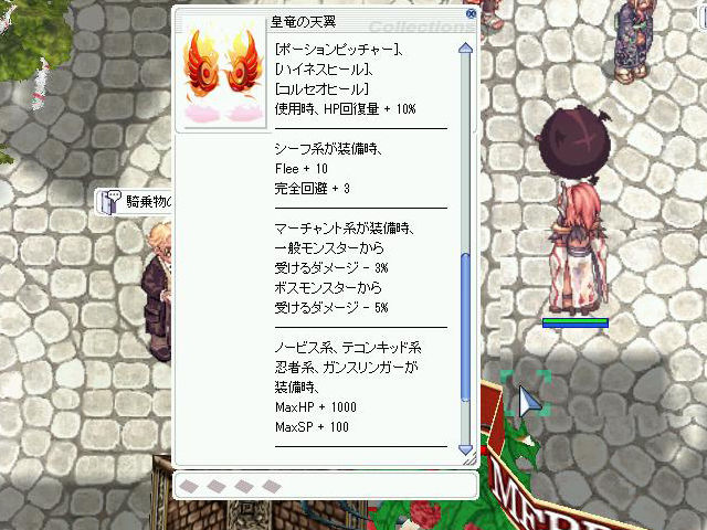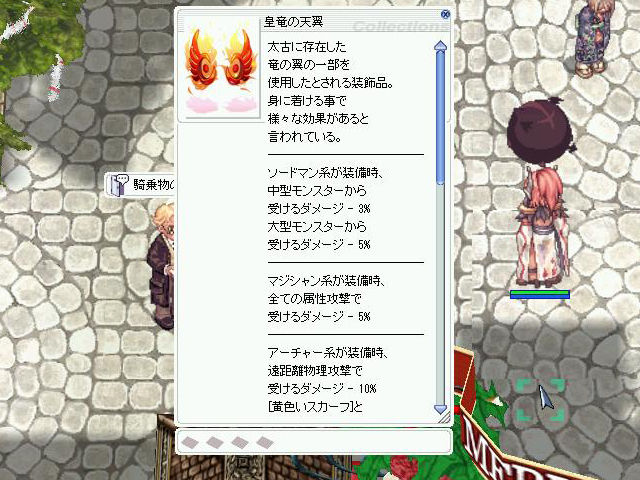 ▲「皇竜の天翼[0]」は職業ごとに様々な効果が得られる中段の頭装備。