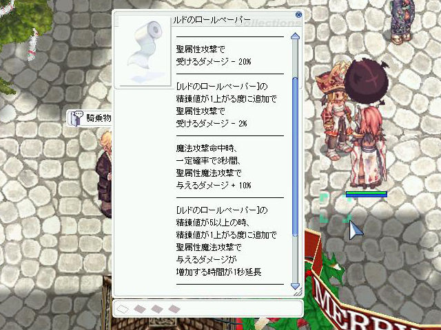 ▲盾、「ルドのロールペーパー[1]」。聖属性魔法のダメージを上げてくれるという珍しい装備。