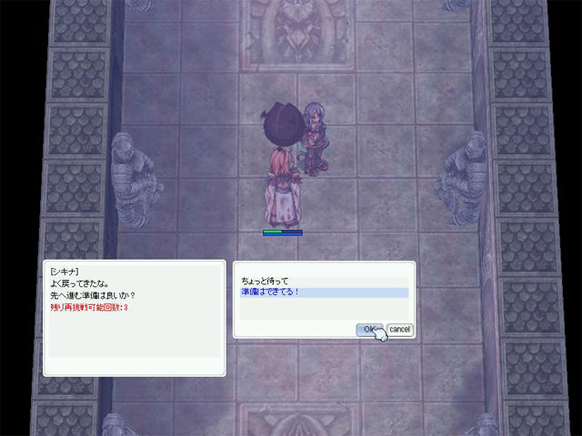 ▲ちなみに再挑戦する場合は、ダンジョン内にいるパーティーメンバーを呼び戻してリスタートになるので、内部でまだ戦っているメンバーがいる場合は注意。戦闘不能になったメンバーはここで待ち、全滅して合流したのを確認してから再スタートをするようにしましょう。なお、再スタートは戦っていた敵とのバトル前からとなります。