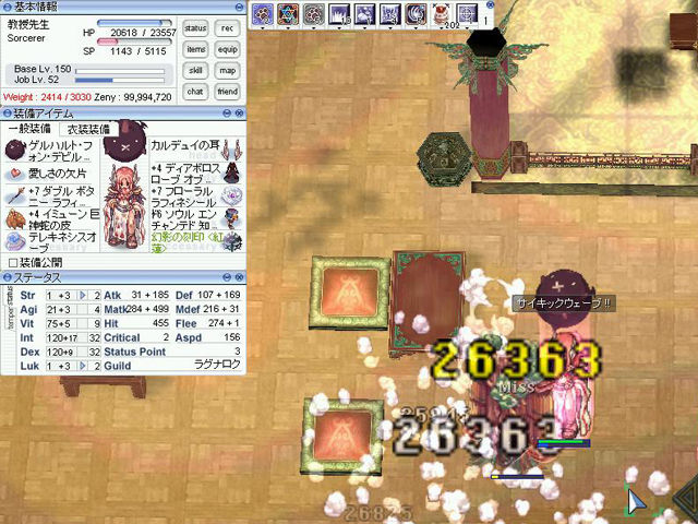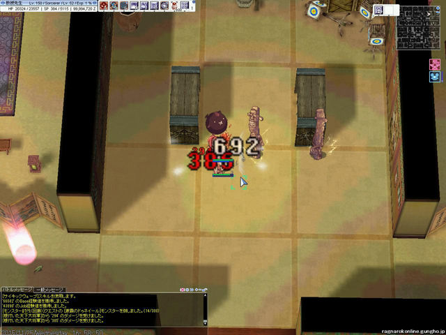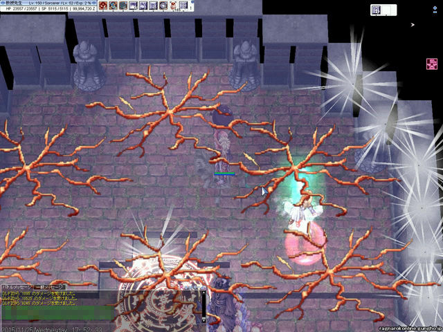 ちなみに「プロンテラ深淵」ダンジョンのほとんどのモンスターはボス属性を持っているので、凍結やノックバックはしません。そのぶん旧市街地などでは範囲魔法が活躍できるようになっています。
