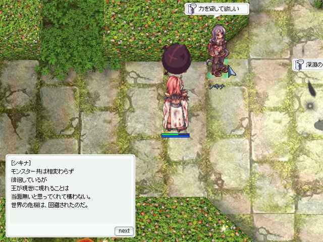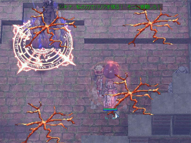というわけで、まずは難関その1。行程が長い(笑)。「シキナ」から受けられる討伐クエストでは、各ダンジョンに数多く生息するモンスターを3種類、指定された数だけ倒してくるように言われます。各ダンジョンごとに、ソロ向け(物理/魔法)、パーティー向け(物理/魔法)といった味付けがされており、例えば「プロンテラ深淵(回廊)」にいるモンスターは、物理攻撃を反射する「リフレクトシールド」を高確率で使ってくるため、物理攻撃をすると酷い目に遭います。そこで魔法攻撃の出番というわけです。