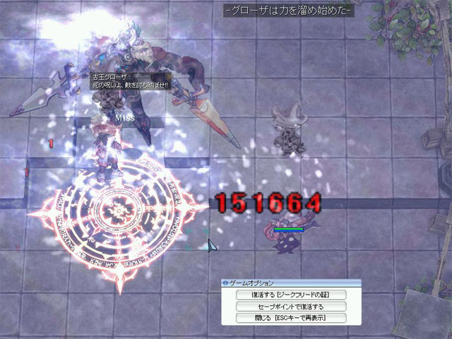 ▲ついにやってきた「古王グローザ」の間。……今回は先を見せていただくためにテストサーバー用のあれやこれやを駆使していただき、私自身はやられては起き上がっての繰り返しだけでしたが……(苦笑)。