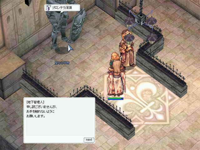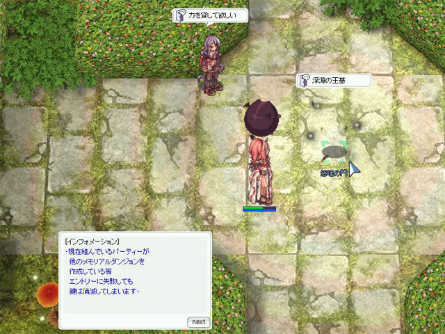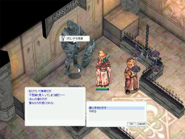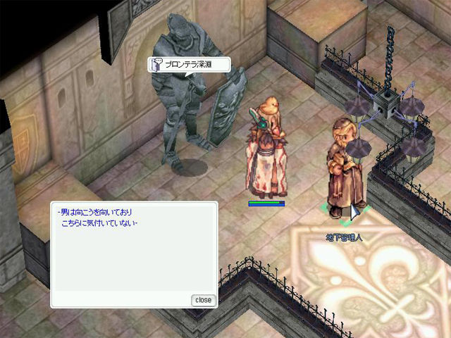 ▲「プロンテラ深淵」への転送NPCは握手像の裏にいます。一度イベントを進めてしまえばダンジョンへ行くのも一瞬です。
