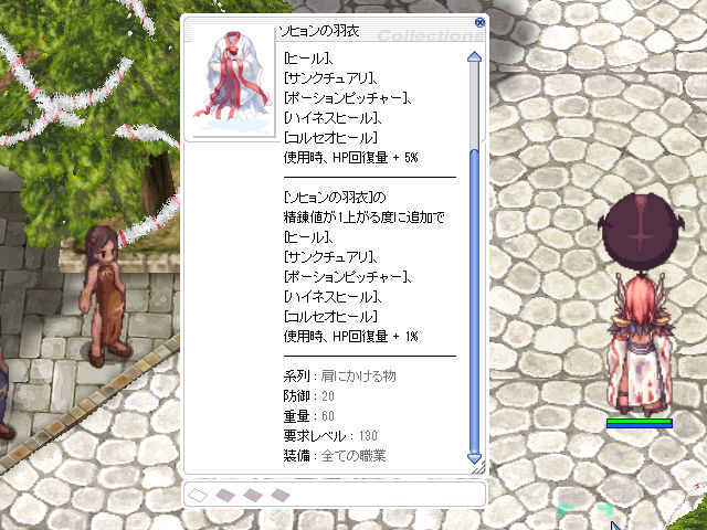 ▲肩にかける物、「ソヒョンの羽衣[1]」。おなじみ回復効果が高まるシリーズ(?)が、肩にも到来。さらに強烈なヒールが炸裂しますね(笑)。