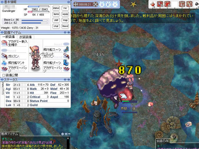 ▲「怒りの船長ペルロック」を倒してクリアし、BaseLv89、JobLv65に。