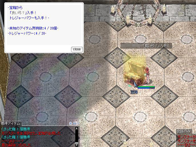 罠や罠の解除法に関しては、「ボンブータワー」の前にいるNPC「トレジャーハンター?」から詳しく聞くことができますが、こちらも昨年までのイベントと同様。宝箱をクリックしたキャラクターがシーフ系、忍者系、アーチャー・ハンター系だと表示されるヒントの文字が多くなります。また、スキル「リムーブトラップ」を習得しているとさらに有利。つまり、最も有利なのは「リムーブトラップ」を習得しているローグ系ということになります。その他のキャラクターは表示される文字が1~2文字程度になるので、罠の種類を見抜くにはコツと運が必要になってきます。