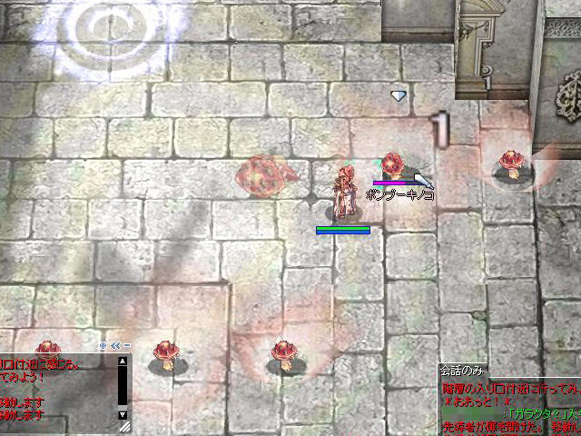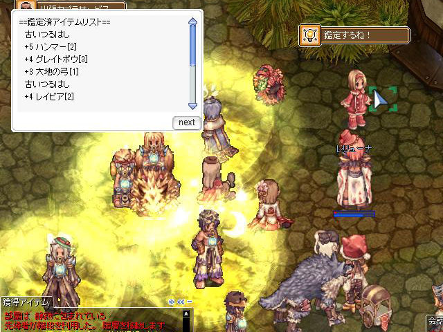 このほかにも、イベントポイントである「ピニョン」を使った転送や髪型変更、HPやSPの回復、恒例の3%回復アイテム「まじ☆キノコ」など、季節イベントならではの便利NPCも集合しています。「ピニョン」は毎日1回、採掘場にいる「ルーン」と会話するだけで1,000ももらえるので、回復アイテムの「まじ☆キノコ」だけが欲しいなんて場合には、「ルーン」に「ピニョン」をもらっておくだけでもOK。ついでに「ルーン」の手伝いを1回でもやっておけば季節イベントのクリアフラグが立つので、次回イベントや、クリスマスイベントでのボーナスが受けられるようになります。