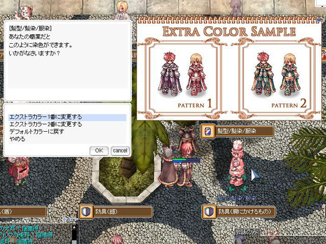 ▲エクストラカラーも自由に選択できます。また、サラのピアスシリーズやエクセリオン装備(しかもいきなり+7)など、エンチャントの効果も望むものがつけられたりするので、いろいろと試してみたいことがだいたい叶ってしまいます。