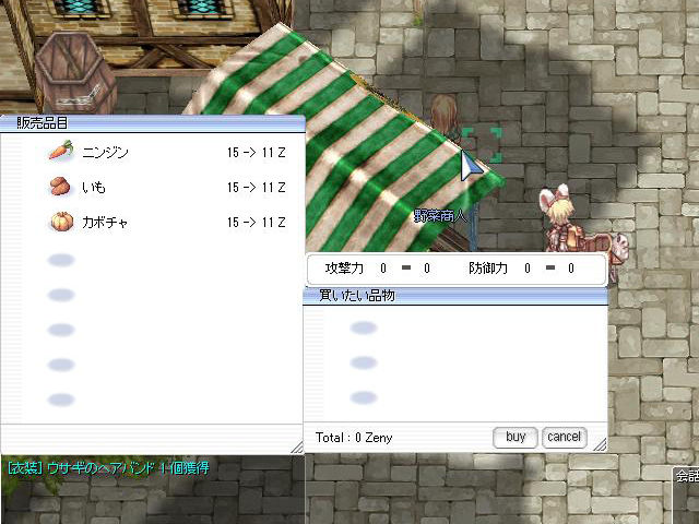 「ニンジン」はプロンテラなどのNPCが販売しており、マーチャントスキルの「ディスカウント」(Lv10)を習得していれば1個あたりわずか11zenyで購入できてしまいます。重量もたったの2なので大量に持ち歩ける点も嬉しいですね。