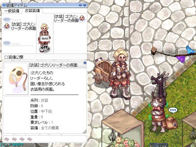 ▲ということで倉庫から引っ張り出してきた「ゴブリンリーダーの仮面[0]」を交換してもらい、「[衣装] ゴブリンリーダーの仮面」を入手!