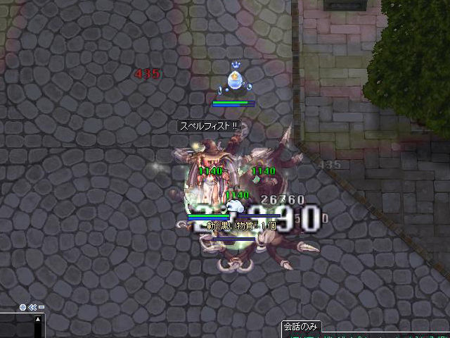 ▲敵を倒すとどんどん増える「侵攻されたプロンテラ」ですが、本体を倒せば取り巻きは消えるので、単体攻撃の「スペルフィスト」でもなんとかなりそうです。ただ、元々複数に囲まれた状態だと増えすぎてピンチに陥ります。