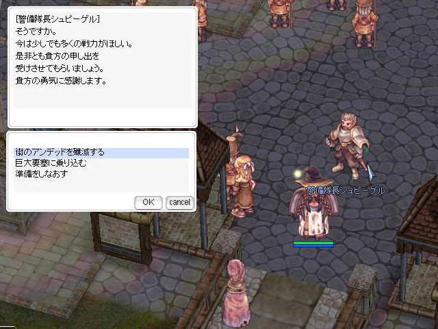 ▲過去のプロンテラでは噂の「ビジョウ」と対面。プロンテラが襲われているという情報を知り、街に出てみることになります。