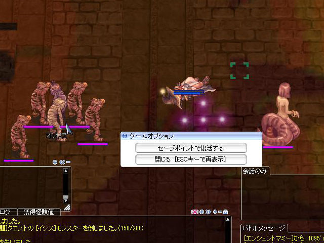 ▲まあ、開始3分で「イシス」さんが未鑑定の「兜」をドロップしてくれて、あとで鑑定してみたら「サークレット[1]」だったというオチもありました。
