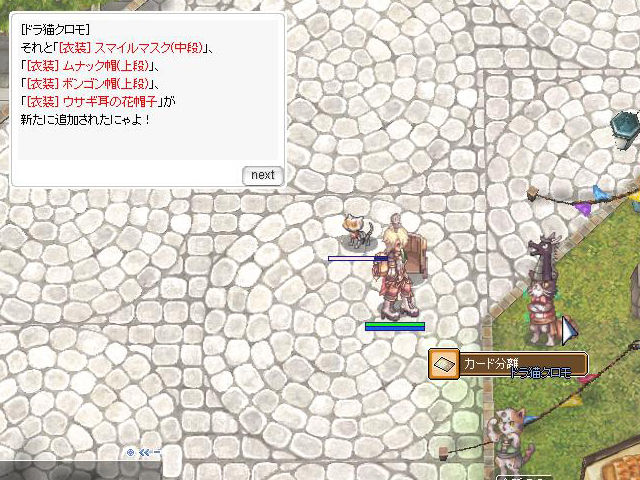 現物アイテムとの交換の場合、店売り装備である「頭巾[0]」、「丸いぼうし[0]」、「ハット[0]」、「サークレット[0]」の4種類に関しては、+7以上に精錬し、装備していかないと交換を受け付けてもらえませんので注意しましょう。