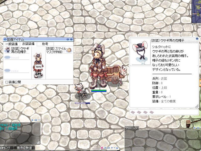 ▲ということでさっそく「[衣装] ウサギ耳の花帽子」と「[衣装] スマイルマスク(中段)」を交換してみました。