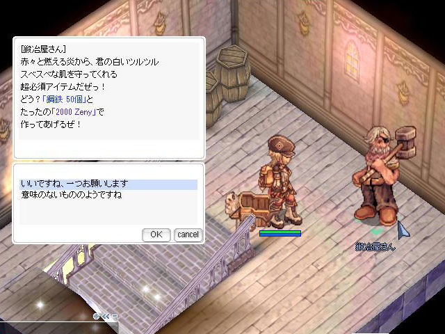 ▲「溶接マスク[0]」はゲフェン南東の建物(元ブラックスミスギルド)の2FにいるNPC「鍛冶屋さん」で入手できます。