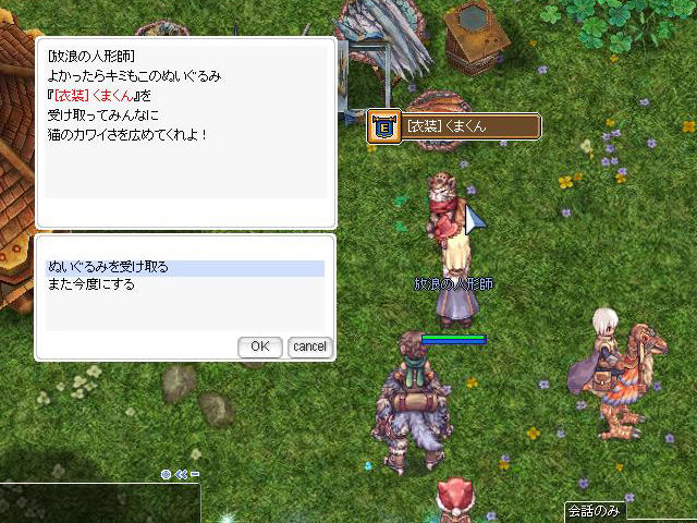 今回は先行実装という形ですが、「ラザーニャ」にやってきたNPC「放浪の人形師」から全キャラクターで受け取ることができます。