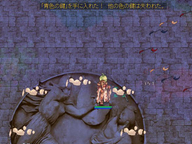 ▲内部では赤、青、黄のいずれかの鍵を手に入れるために、モンスターを1体倒します。色にちなんだ名前になっていますので、目的の色の敵を倒すようにしましょう。