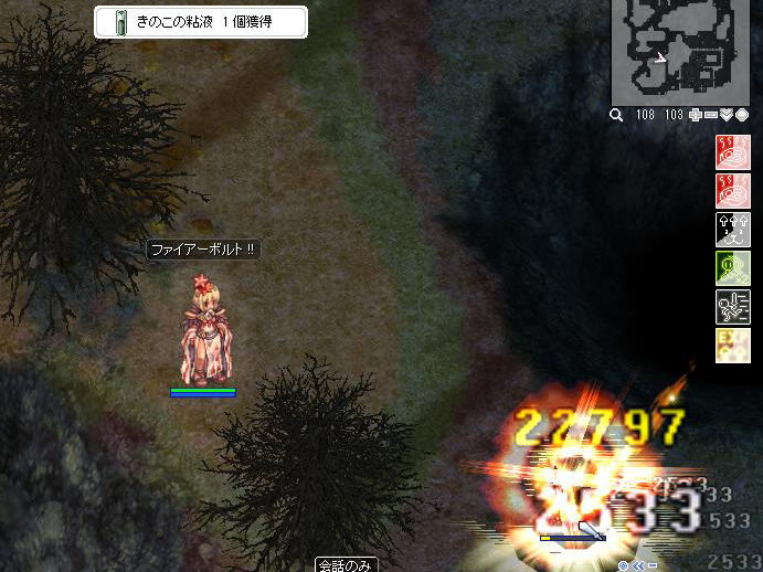 ▲「蛍きのこ」は「Mセルフディストラクション」を使ってきますが、その自爆を誘っても倒したことになるので、必中攻撃などがあれば、クエストアイテムは比較的簡単に手に入ります。