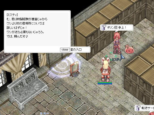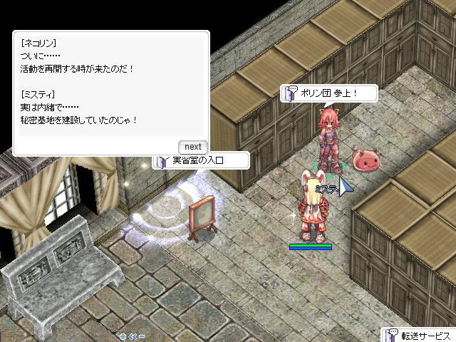 ▲というわけでやってきましたポリン団秘密基地。どうやら団員も増えているようで、便利なNPCたちが集まってくれています。各地のイベントでミスティとネコリンが暗躍もとい活躍していたのはこの日のためだったのでしょうか。