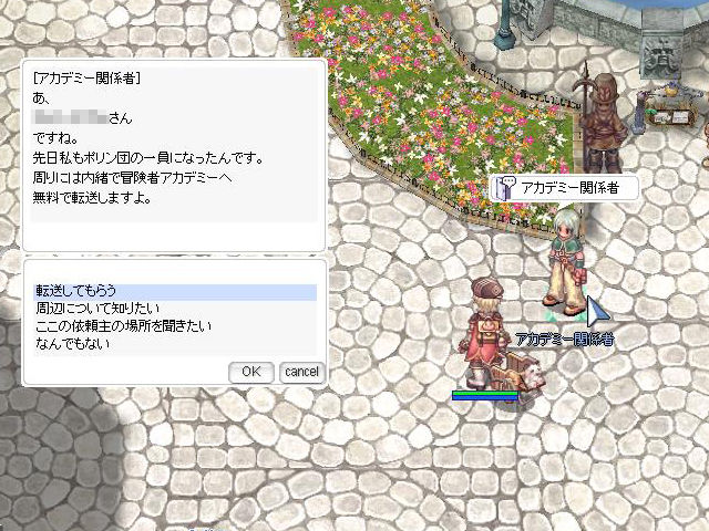 すでに冒険者アカデミーを卒業するBaseLvはもちろんのこと、3次職にも転職してしまっているため、「ミスティ」は依頼のモンスターが生息しているマップに転送すらしてくれません。仕方なく「ジョンダパス」を駆使してクエストを進行させていきました。