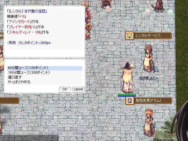 「ラグ・コレ」もわりと定番イベント化しているので、ベテランプレイヤーの方なら説明不要かもしれませんね。基本的な流れとしては、メモリアルダンジョンなどでの討伐クエストをクリアしてもらえるイベントポイント「プレタポイント」で、強力な装備やおしゃれができる衣装装備などをレンタルできるというもの。レンタルできる装備は、精錬値やエンチャント、カード挿入済みなど、めったに手に入らない超豪華仕様になっているので、この機会にその威力を体感するチャンスです。