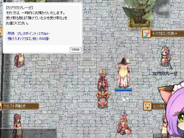 ▲あまりポイントは使わないけれど「衣装チケット」が欲しいという場合には、とりあえず「カプラカプレーゼ」からマカロンをもらって預けておけばOK。ただし、預けられる数には限度があるのでその点には注意しましょう。