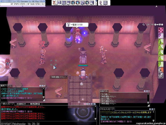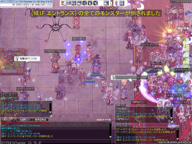 今週のトピックスとしては、毎月恒例のラグ缶のラインナップ更新も話題です。今回の「ラグ缶2019 Spring」(詳しくはこちら)では、ロイヤルガードの「アースドライブ」などを大幅に強化する「シールドリング[1]」や、無・人間形モンスター、ドラム形プレイヤー、火・水属性モンスターと幅広い敵に威力を発揮するうえ、ノックバック耐性を持つ「氷獄のドレス[0]」、敵のMdefの一部を無視することのできる鎧「白糸威胴丸[1]」の3種の新装備がラインナップ。カード剥がしに使用可能な「特選ネコ缶(マグロ)の箱」がラインナップに入っているのもポイントでしょうか。