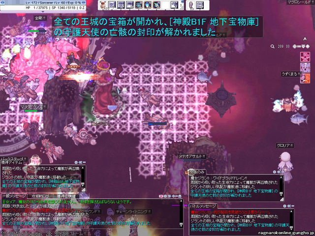 昼の「ティアマト攻城戦YE」なら参加人数もそれほど多くはならないでしょうし、みんな初見なので多少気は楽です。メンテ明けとともに真っ先にYggdrasill(1)ワールドにログイン。会場マップでログアウトさせておいたキャラクターで倉庫から装備を取り出してNPCに参戦表明! 意気揚々と城に殴り込みをかけますが……ふと思いました。あれ、昼の回とはいえ、なんか参加人数少なくない?