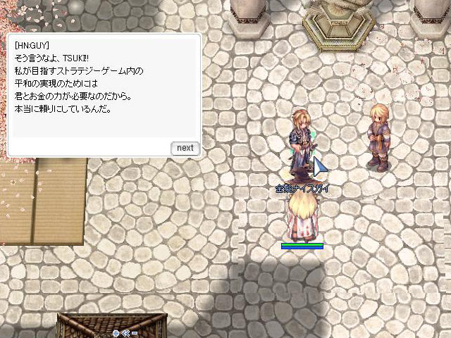 ▲古代の三つの国が争うストラテジーゲームにすっかりハマってしまったらしい金髪のナイスガイこと[HN:GUY]さん。友人の[HN:TSUKI]さんにお金を用立ててもらっているようで……。いろいろ妄想できそうな内容が……!?