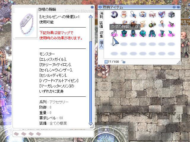 ▲以前、イベントで獲得できた「怨嗟の腕輪[0]」も入手。リヒタルゼンに移動できる便利なアイテムなので、ぜひとも手に入れておきたいところ。