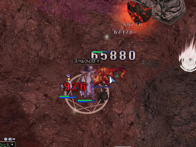 上の装備とステータスだと、「サラマンダー」は、「コールドボルト」の「スペルフィスト」3発で倒せたので、囲まれたりしなければ狩りを行うのはムリではありませんでした。「スペルフィスト」は6発チャージなので、3発で倒せるのと4発かかるのとでは雲泥の差があるんですよね。
