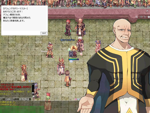 ▲「ゲフェンアカデミーマスター」のお話のあとに、今回から追加された経験値をもらい……。
