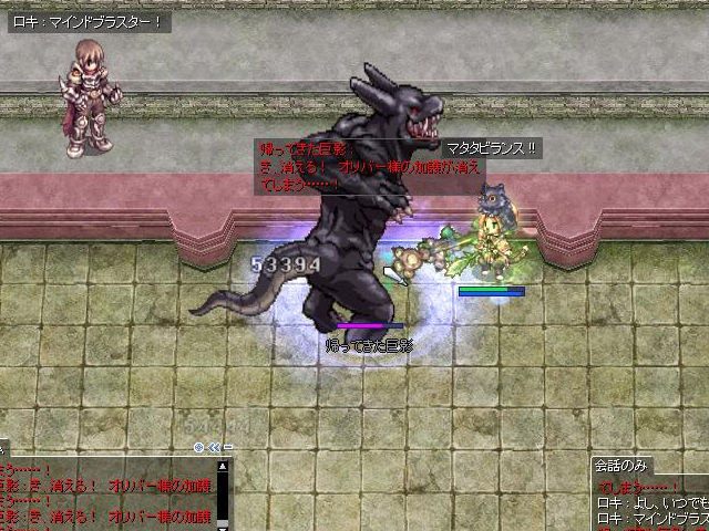 こちらは通常と同様に「ロキ」の「マインドブラスター」が発動しないとまともにダメージを与えられません。観覧席にいる「ロキ」が「よし、いつでもいけるぞ」と言ったあとに話しかけると「マインドブラスター」を発動してくれます。