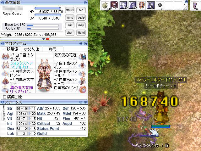 しかし、先日入手したロイヤルガードスターターパックの特典装備「白羊宮セット」は遠距離物理攻撃の「シールドチェーン」が強化されるということで、「プロンテラ深淵(祭祀場)」でも狩れるかなーと思い立ち、挑戦してみることにしました。