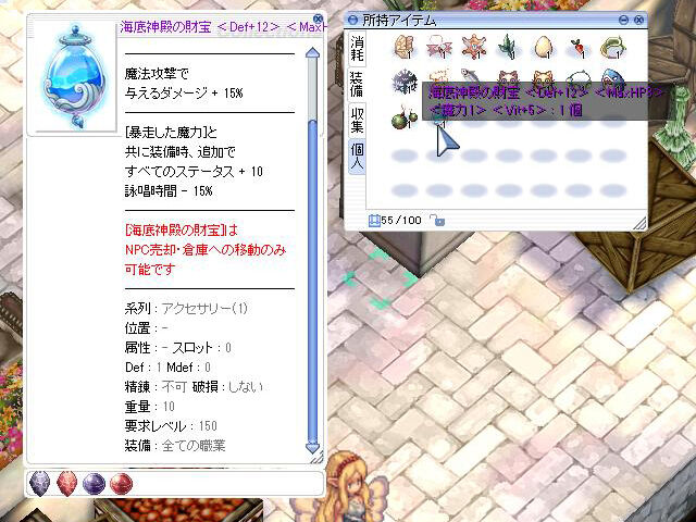 今回の大当たりは現在の相場ではだいたい1.8Gzeny(18億zeny)くらい。私のキャラではあまり使いみちがなかった(正確には有効に使う前提の火力装備などがなかった)ので、速攻でNoatunワールドで露店して売却。おかげさまで、これまでの『RO』プレイ歴で最大のZeny所持額となっています。というか、1Gどころか500Mzenyも持ったことありませんでしたよ……。
