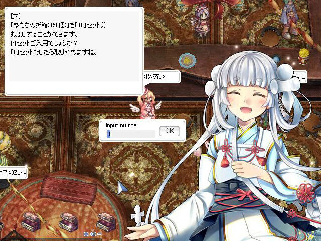 これとは別に、「イベントホール」にいる「式」も、「桜もち」を150×10セット分まで渡してくれます。こちらも有効活用していきましょう。