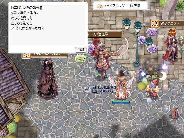 ▲10分間の「堕メロリン」激湧きによって、「ダークメロン」を100個前後、「ノービスエッグ」を数個獲得できました。「メロリンカード」「堕メロリンカード」の作成素材になっている「ノービスエッグ」はかなり貴重なので、このイベントは重要かも。