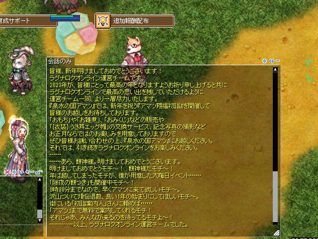 ということで、『RO』では2023年の正月イベント「ぴょんと跳躍! アマツ翔福初詣」が開催中。イベント期間は2023年1月10日(火)の定期メンテナンス前までということで、残りわずかとなっています。