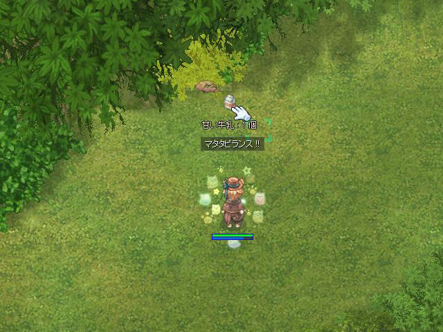 初日の必要アイテムではテイミングアイテムの「甘い牛乳」がポイントになっていました。テイミングアイテムはできるだけ拾っておくようにしているので、倉庫やカート内にあるだろうと高をくくっていたのですが、残念ながら在庫なし。「サベージ」の討伐ついでに「サベージベベ」も積極的に倒してみましたが出ません。一瞬諦めかけたのですが、せっかくだからと「甘い牛乳」が出るまで「サベージベベ」を狩り続けてみることにしました。なんだかんだで20分くらい狩ったところで「甘い牛乳」がドロップしてくれて一件落着。