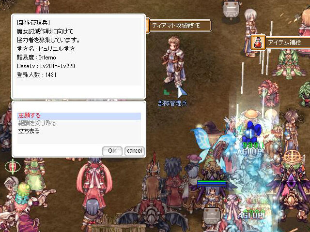 ▲拡張4次職のレベリング需要か、少し前から「ティアマト攻城戦YE」のInfernoは参加人数が膨れ上がっています。サーバー側が増強されているのか、この人数でも多少カクつく程度で戦えないことはないのですが、やはり一点集中しすぎな感じではありますよね(苦笑)。