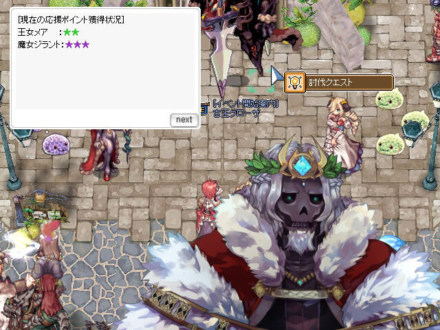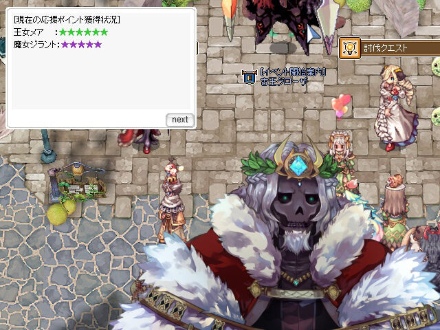 さてさて、「ゲフェン・メロンフェスタ」は2週目ということで、「激突!スウィーツコンテスト!!」の勝敗が決定していますね。私は先週お伝えしたように、王女メア陣営でクエストをクリア。ワールド内の勝敗の行方を見守っていたのですが、結果的に応援をしていた王女メア陣営が勝利しました。とはいえ、ジラント陣営のワールドボーナスを希望していた方も結構いらしたようで、かなりの接戦が繰り広げられていた模様です。